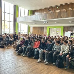 Während seiner Erzählung herrschte in der Aula eine gespannte, aufmerksame und traurige Stimmung. Die anschließende Fragerunde wurde genutzt, um tiefer in die Geschichte und Gefühle Krakenbergers einzutauchen, die nicht ohne den beeindruckenden Mut, der Zivilcourage und Menschlichkeit der Familie Stockmann erzählbar ist.