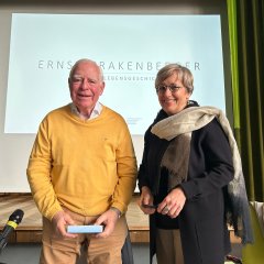 Am 11.11.2025 besuchte Ernst Krakenberger (84 Jahre) die Klassen der Jahrgangsstufe 10 sowie Schülerinnen und Schüler der Oberstufe in der Aula des Eichendorff-Gymnasiums. In dem von Frau Stein und Herrn Gast organisierten Besuch präsentierte er den Schülerinnen und Schülern seine Überlebensgeschichte als Angehöriger einer jüdischen Familie in den 1940er Jahren.