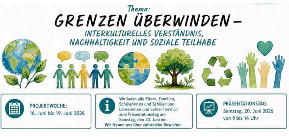 Dieser Tag bildet den Höhepunkt unserer Projektwoche vom 16. bis 19. Juni 2026, die unter dem Leitgedanken „Grenzen überwinden“ steht. Es geht dabei um interkulturelles Verständnis, Nachhaltigkeit und soziale Teilhabe.