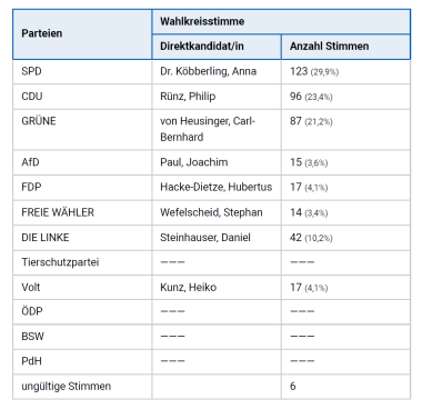 Hier die Erststimmenergebnisse im Detail:
